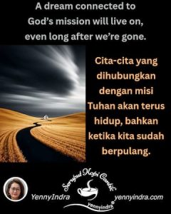 Sebab mimpi yang dihubungkan dengan misi Tuhan tidak akan berhenti pada diri kita — mimpi itu akan terus hidup bahkan setelah kita tidak ada lagi.
