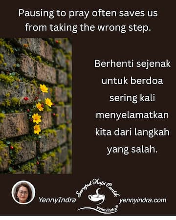 Saya pribadi belajar, setiap keputusan besar seharusnya melewati satu proses penting: dibawa ke hadapan Tuhan sampai ada damai sejahtera yang menjaga hati. Bukan sekadar tenang karena sudah memutuskan, tapi damai yang lahir karena roh kita berkata, “Ini benar.”