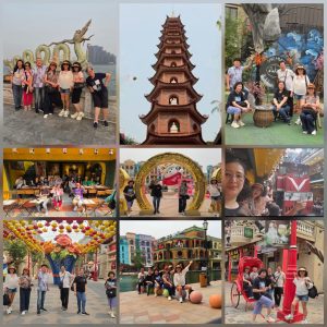 Yang paling menyenangkan adalah saat naik kendaraan wisata semacam “odong-odong” modern untuk berkeliling. Kami dibawa melintasi berbagai tema arsitektur yang sangat cantik. Ada sudut yang membuat kita merasa sedang berada di Hong Kong dengan lampu-lampu neonnya yang ikonik, lalu seketika berpindah ke kanal-kanal romantis ala Italia di Venesia. Tidak hanya itu, ada juga nuansa Korea yang estetik serta sentuhan Prancis yang elegan.