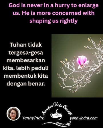 Tuhan lebih peduli membentuk karakter daripada mempercepat hasil.