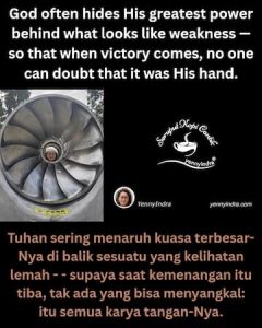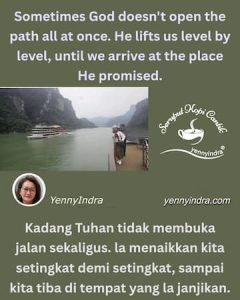 Padahal itulah cara Tuhan membentuk sayap kita. Ia tahu bahwa kita tidak bisa terbang kalau masih mempertahankan cara lama berjalan. Seperti kupu-kupu yang harus menunggu sayapnya menguat sebelum bisa keluar dari kepompong, begitu juga kita — harus melewati masa “gelap” pembentukan sebelum bisa terbang dalam kebebasan yang Tuhan janjikan.